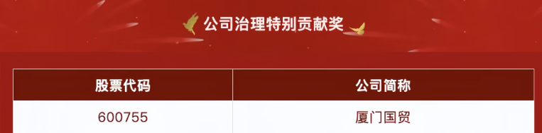 廈門(mén)國(guó)貿(mào)榮獲第二十屆 “金圓桌獎(jiǎng)”之“公司治理特別貢獻(xiàn)獎(jiǎng)”。